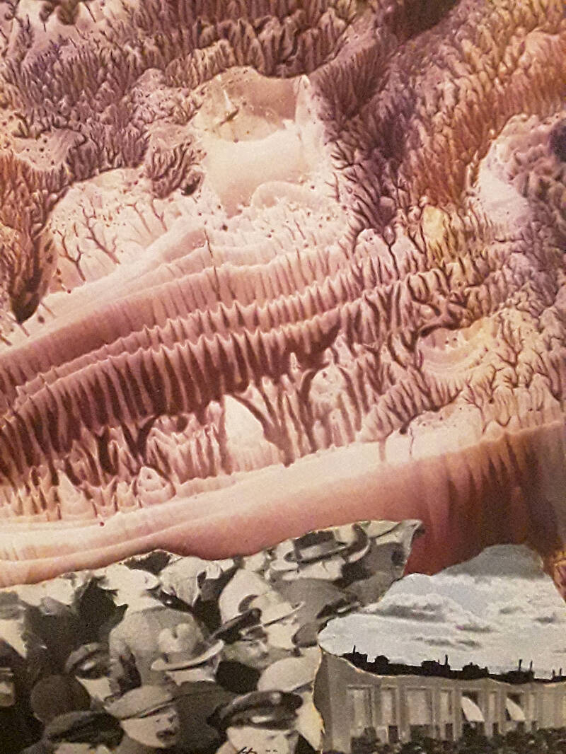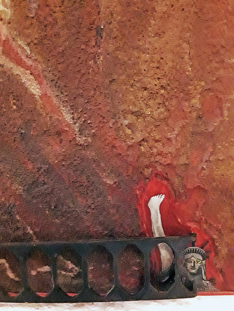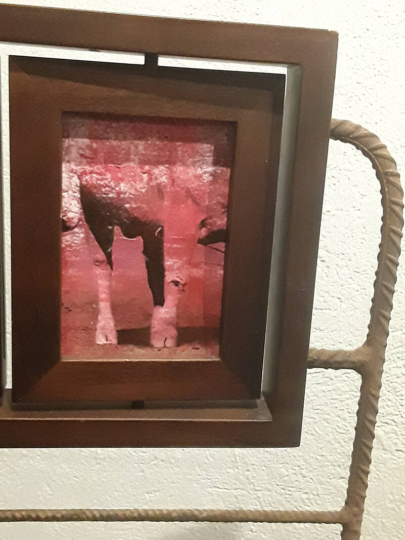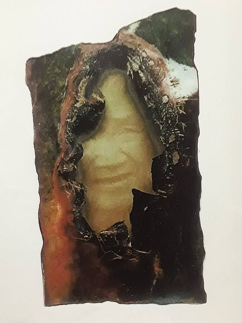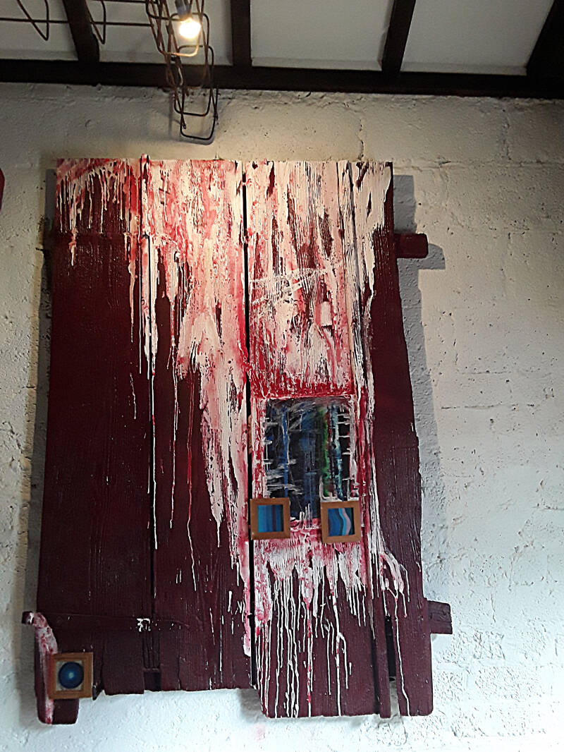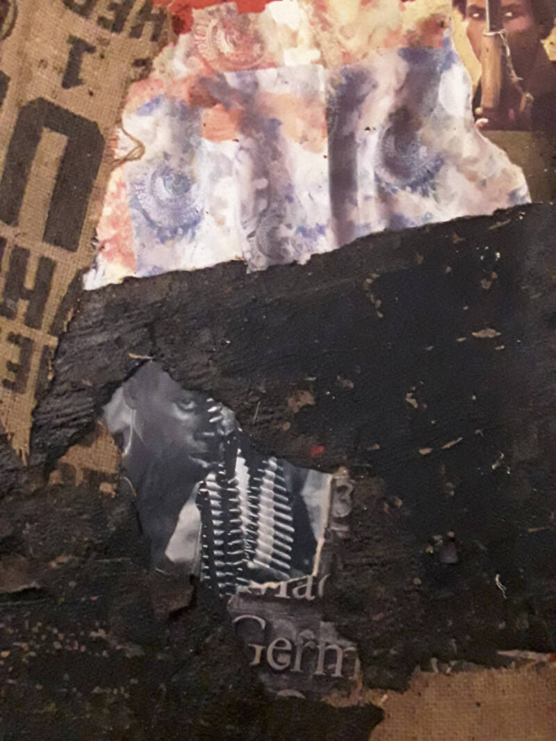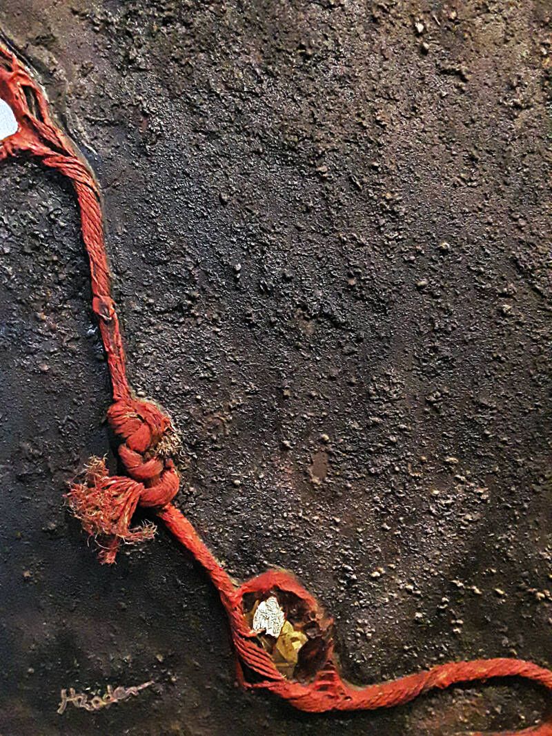 Gesammelt aus Fundstücken und aus verschiedenen Materialien, wie Holz, Eisen, Stoff und Stein bilden die Skulpturen und Materialbilder eine archaische Welt, die die Fantasie des Künstlers widerspiegeln und die Fantasie des Betrachters anregen sollen.